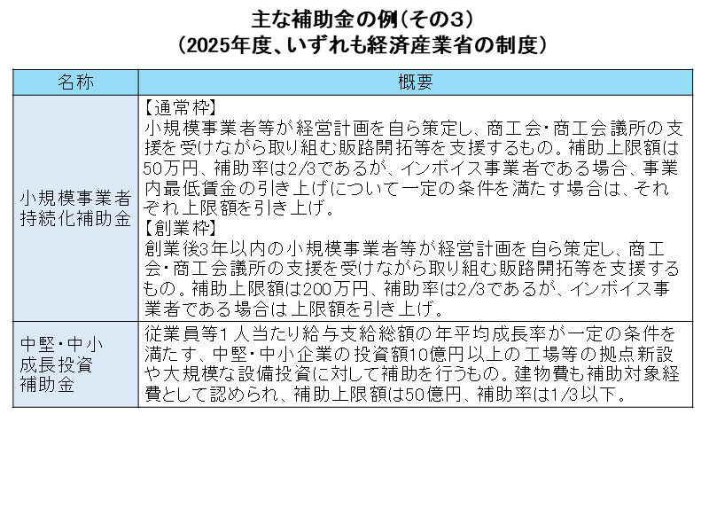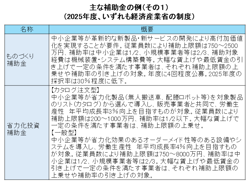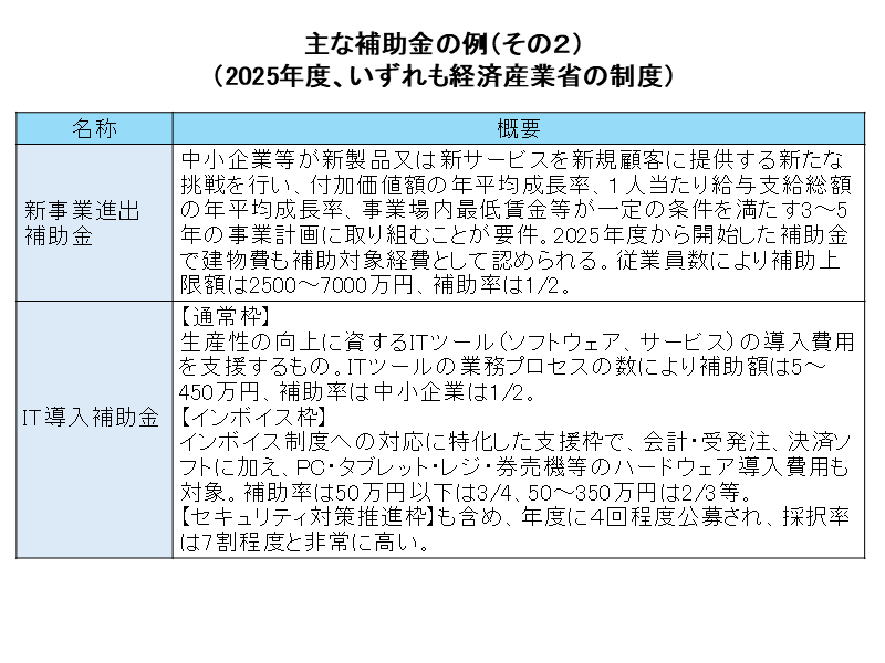 以下に、2025年度の国の主要な補助金を挙げてみます。ビジネスの発展を支援する補助金は経済産業省の所管するものが充実しています。